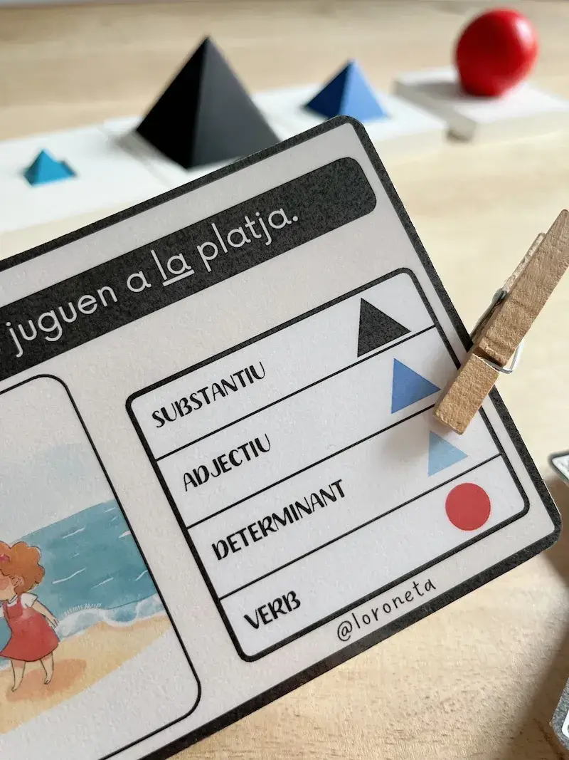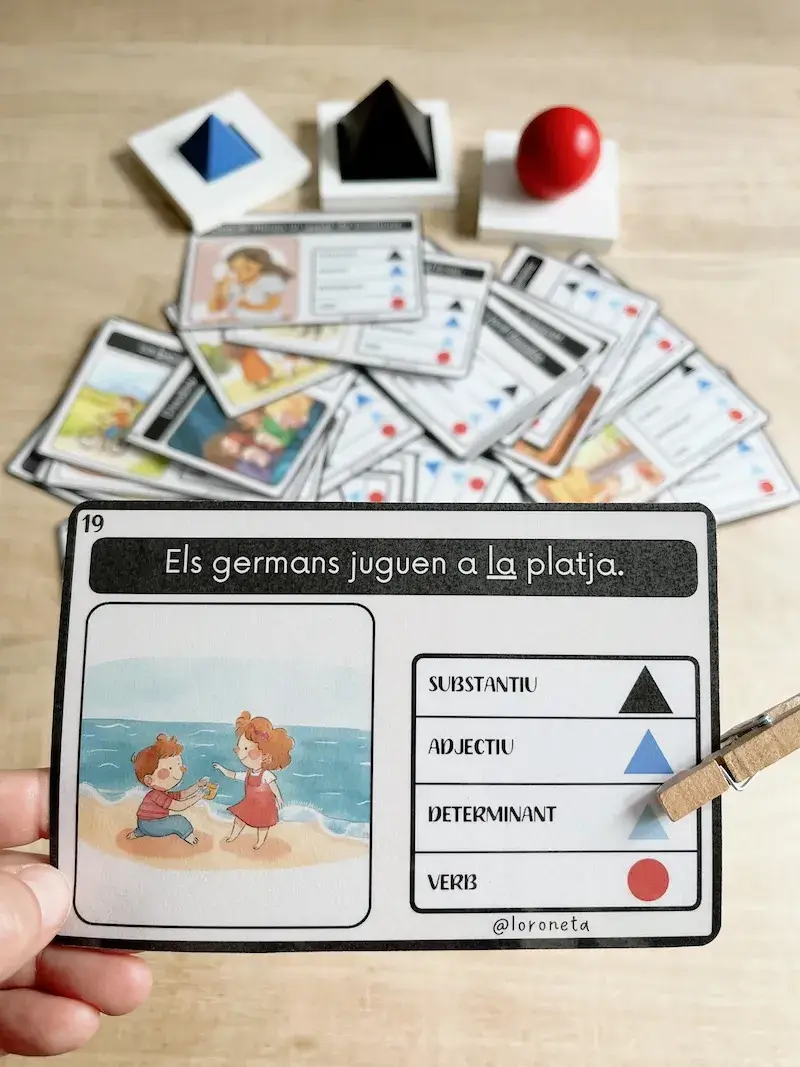El recurs està pensat principalment per a l’alumnat de segon i tercer cicle de primària, tot i que també pot utilitzar-se amb alumnat de segon de primària que tinga familiaritat amb la gramàtica Montessori, en funció del seu ritme d’aprenentatge. És un material flexible i adaptable, adequat per a grups de reforç, estacions d’aprenentatge, racons de llengua o activitats de consolidació gramatical.